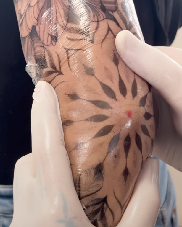 Yes! STANDSTILL remains stable during tattooing and even makes the film temporarily water-resistant when using ointments. Just make sure to dab instead of wiping to avoid smudging.